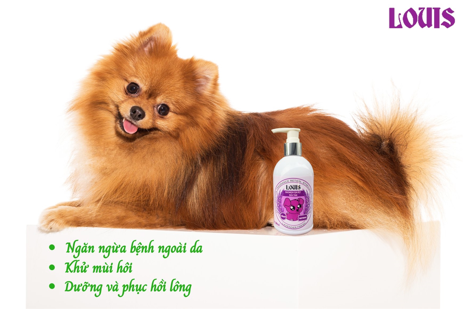 + Làm sạch da, lông khỏi bụi bẩn, vi khuẩn, ký sinh trùng. Giữ ẩm,phục hồi lông hư tổn, cải thiện tình trạng xơ rối, dưỡng lông, giúp cho bộ lông thú cưng ngày càng bóng đẹp, mượt mà