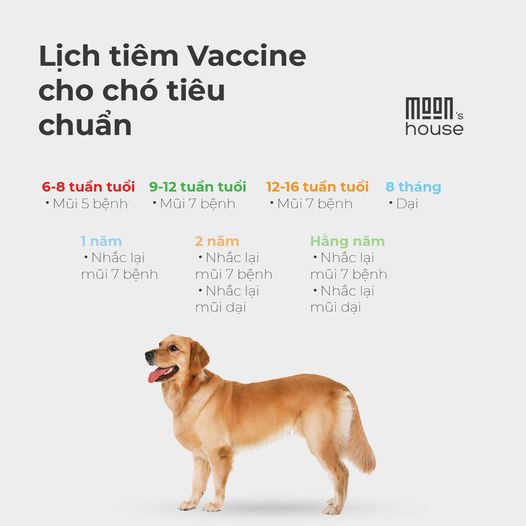 Với bất kì gia đình nào cho nuôi thú cưng trong nhà thì việc tiêm chủng là không thể bỏ qua được. Từ mũi tiêm phòng bệnh dại cho chó là mũi cơ bản nhất và một số mũi cần thiết khác. Sau đây là một bảng tiêm chủng "tiêu chuẩn" (có thể thay đổi theo thời gian và sự phát triển của y học).